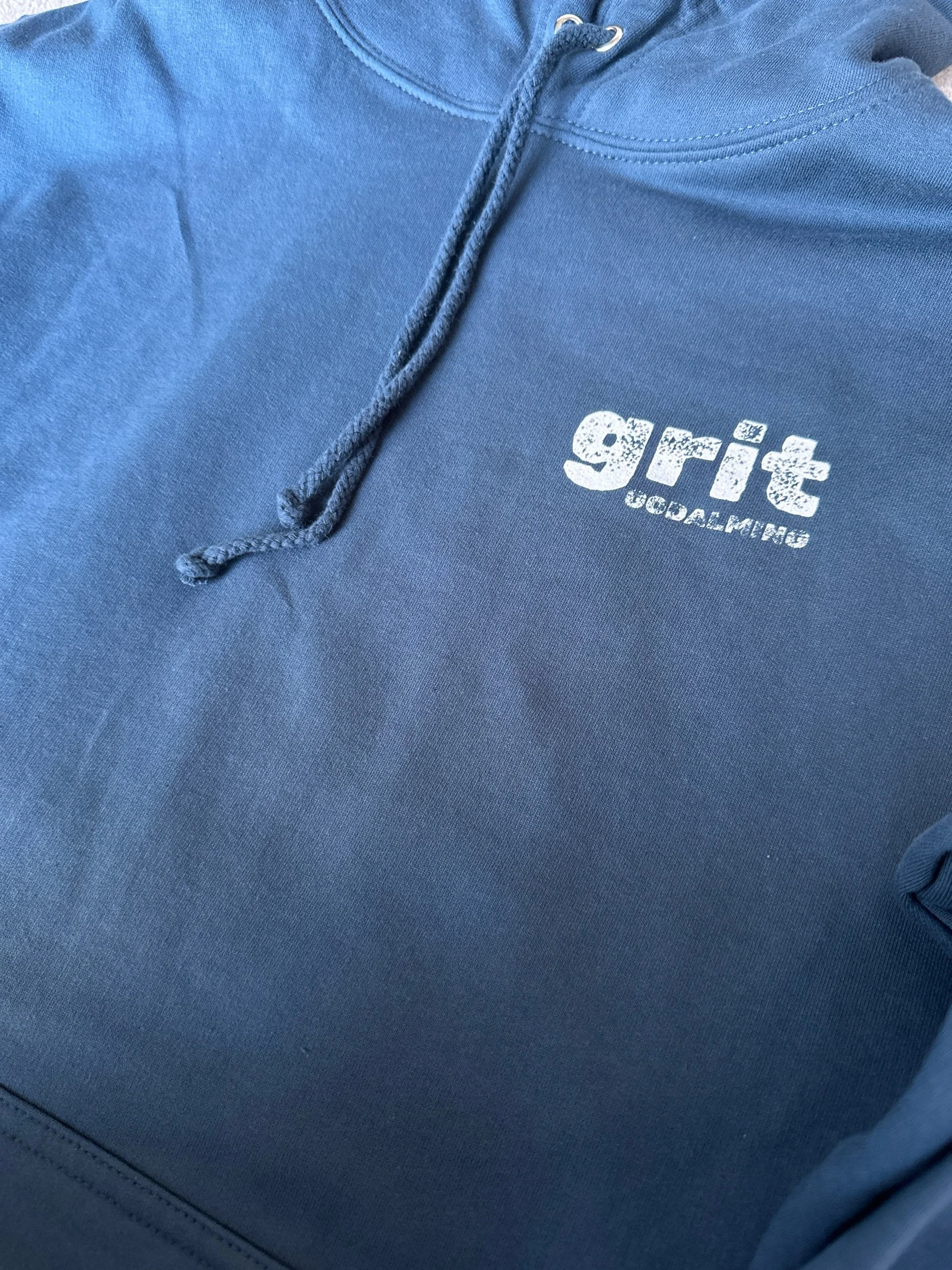 Classes & Merch › Grit Hoodie - airforce blue Image 1 of 2 Image 2 of 2 Grit Hoodie - airforce blue £30.00 College style hoodie80% cotton20% polyester Size: Large Medium Small Purchase Added! College style hoodie80% cotton20% polyester