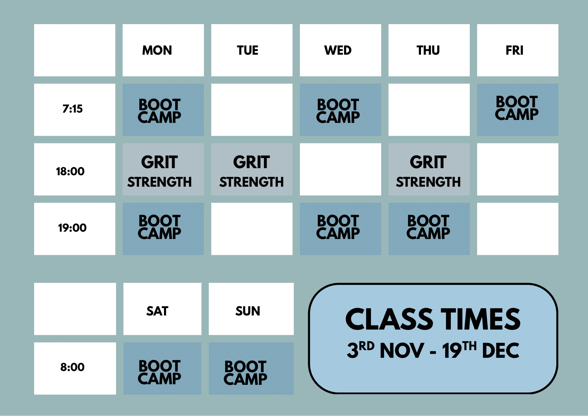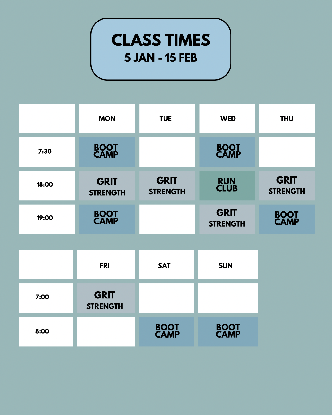 The joy of ‘grit’ is that you get to enjoy your workout and choose your own goals - be it improving fitness, strength, burning calories or moving your body 2-3 times a week and being in the fresh air.